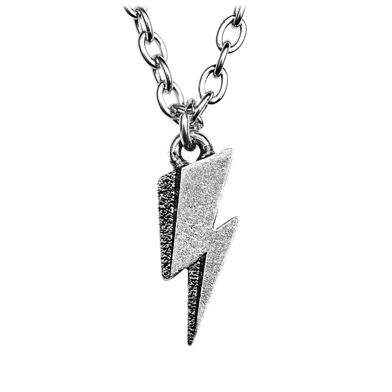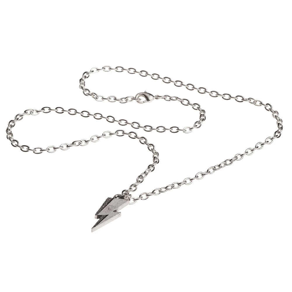 David Bowie Aladdin Sane style lightning bolt 7/16″ x 1″ pewter pendant on 21″ silver metal chain