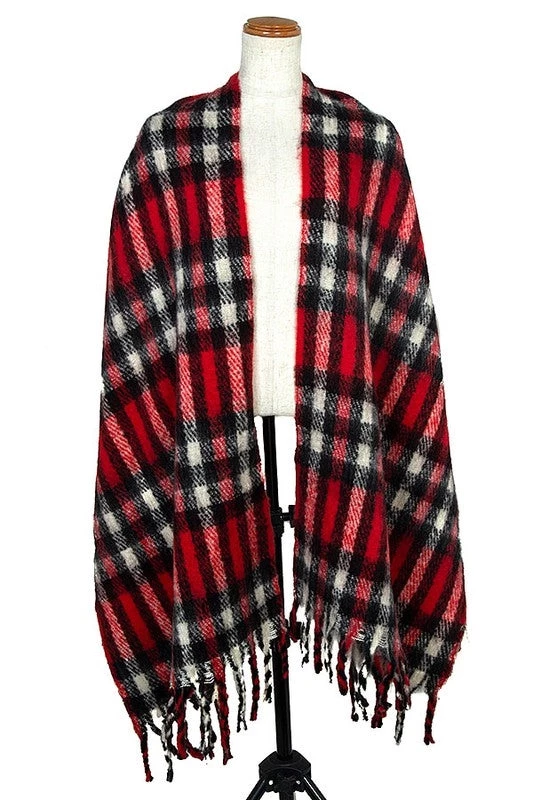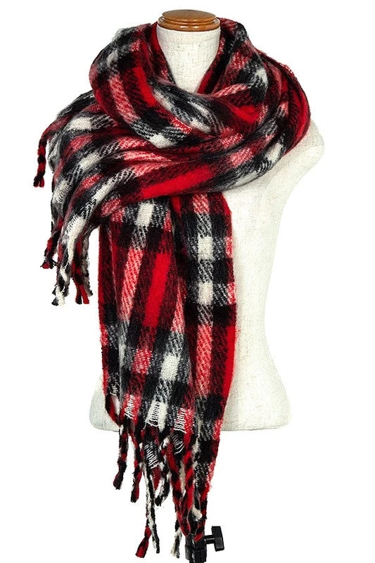 BIG red, black & creamy white plaid scarf with fringe –it’s thick, fuzzy soft and SO cozy!
