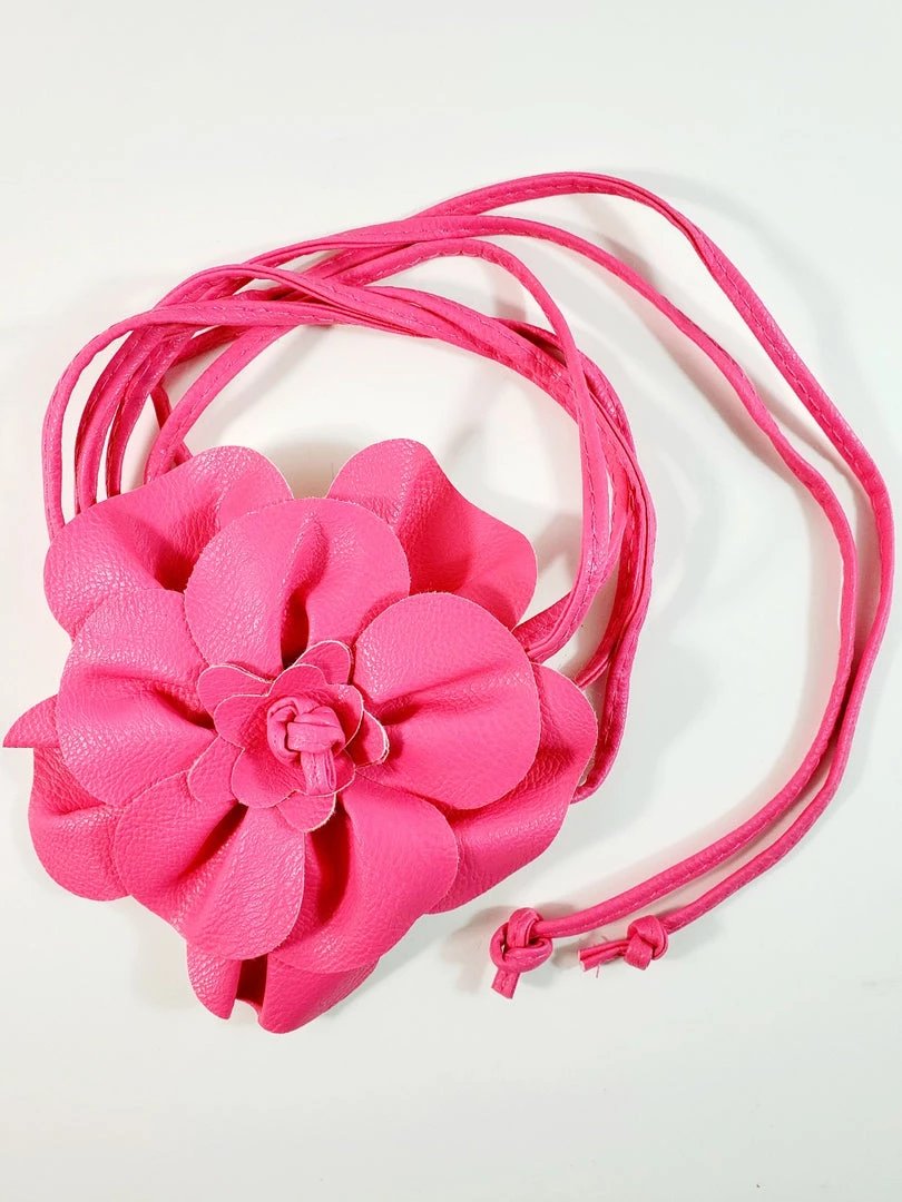 So dramatic! This 6″ hot pink faux leather flower belt with long ties is the just the bold accessory so many outfits are calling for!