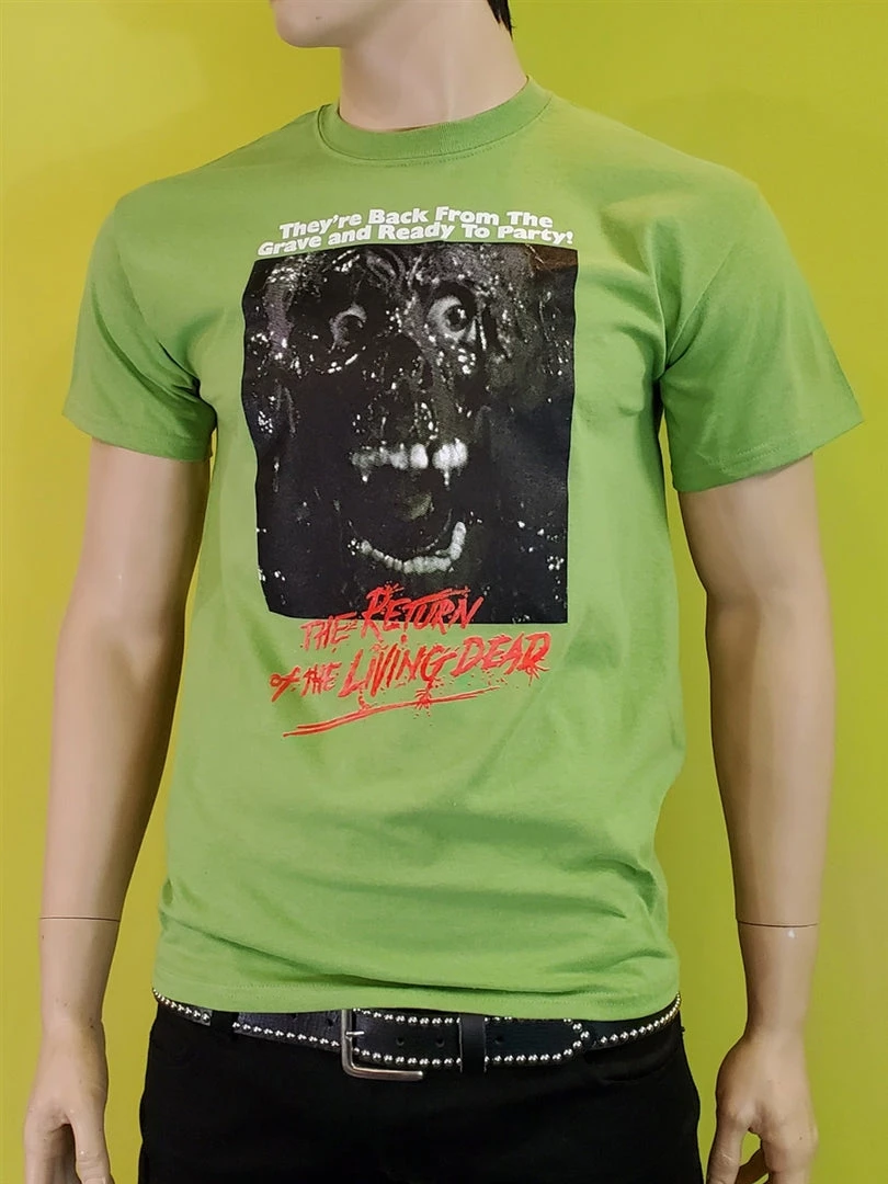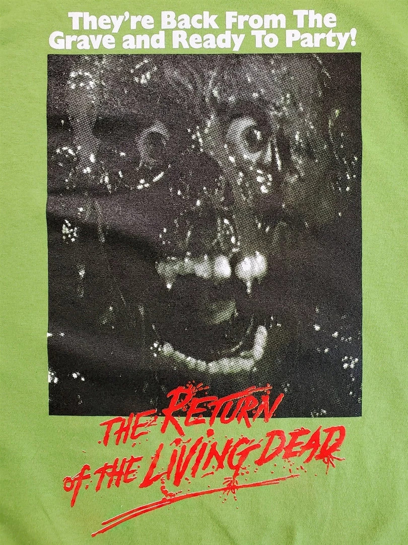 “Tarman” from the 1985 zombie comedy cult classic, The Return of the Living Dead plastisol ink screenprint on fitted 100% cotton pea green men’s sizing t-shirt.