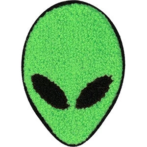 Letterman’s jacket type fuzzy chenille embroidered lime green alien face patch