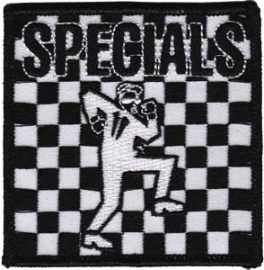 Classic Specials black & white checkerboard and dancing rude boy imagery embroidered patch