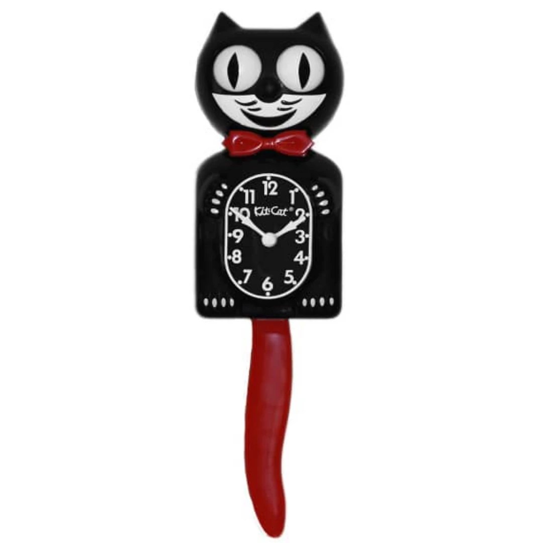 Iconic kitschy home decor classic! An Art Deco style novelty wall clock first designed in 1932 (and originally made here in Portland, Oregon!), the Limited Edition Crimson Royale black & white Kit-Cat Klock features a red bow tie, mischievous grin, and big round eyes that swivel side-to-side in time with its red pendulum tail –still neat-o after all these years!!