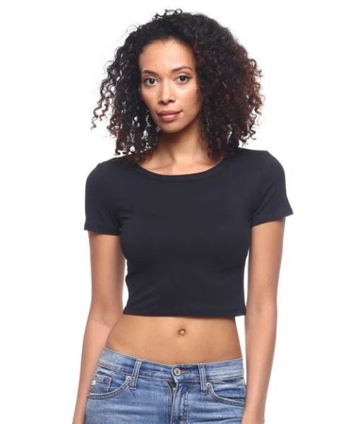 Great basic fitted crew neck cropped stretch knit t-shirt in black