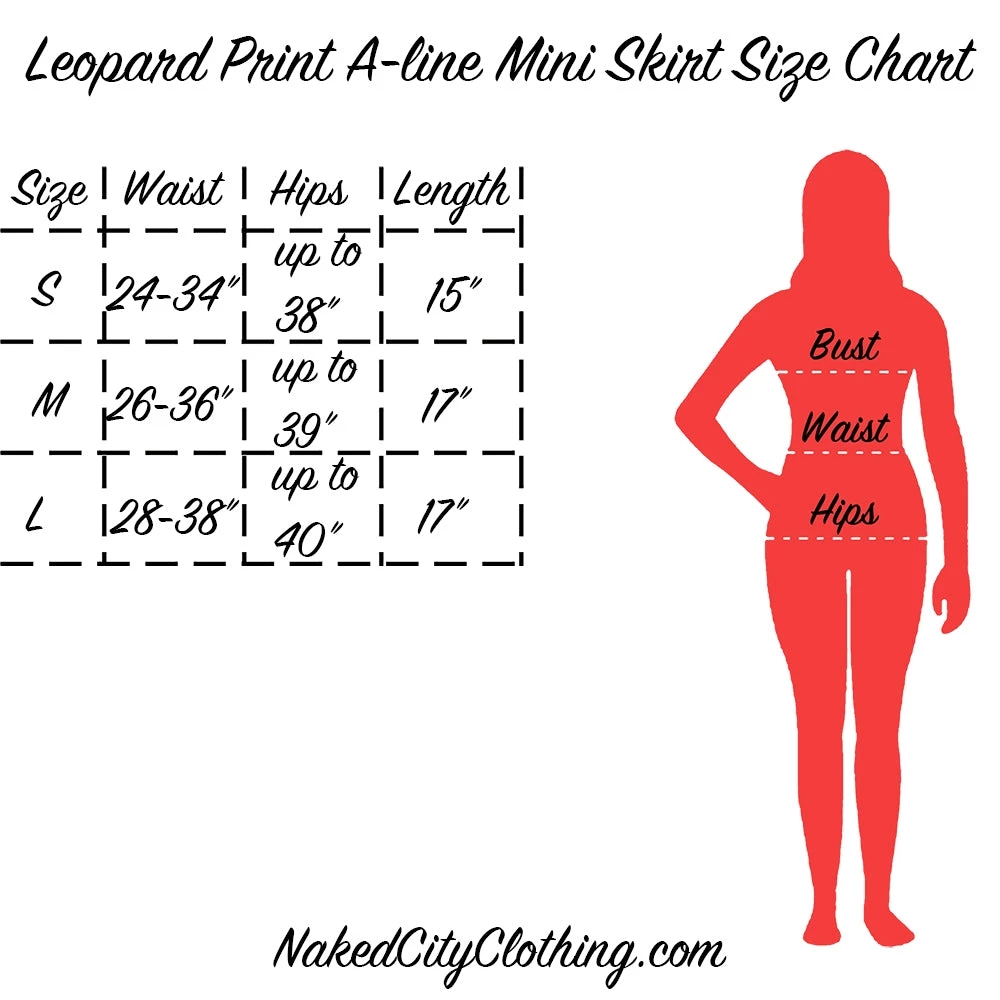 Super-cute stretchy grey leopard mini skirt in a flattering a-line silhouette.