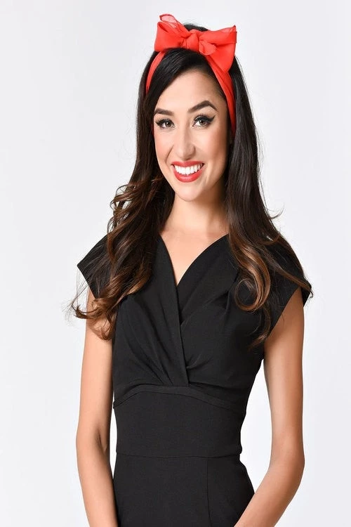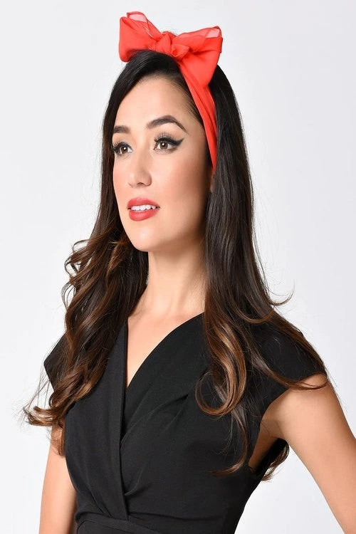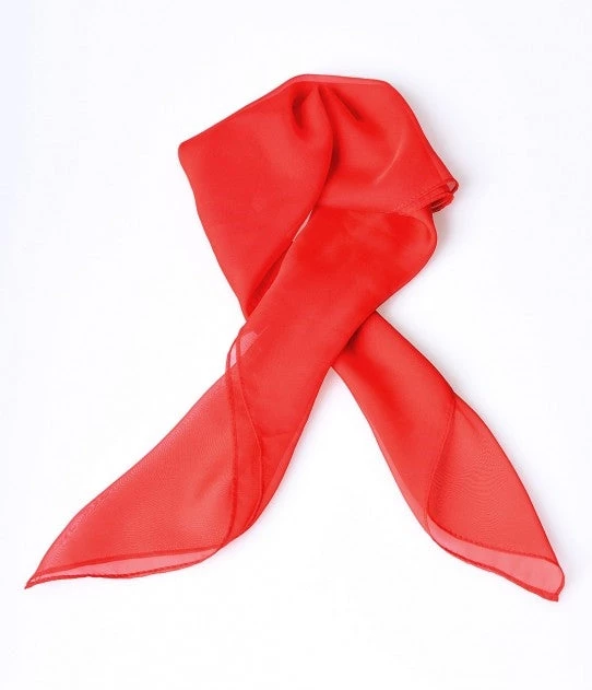 Vintage inspired semi-sheer red chiffon square scarf by Unique Vintage.