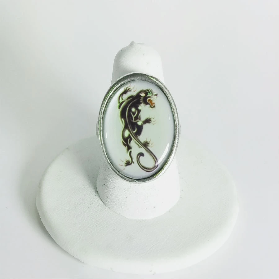Tattoo flash inspired black panther image oval ring by Classic Hardware