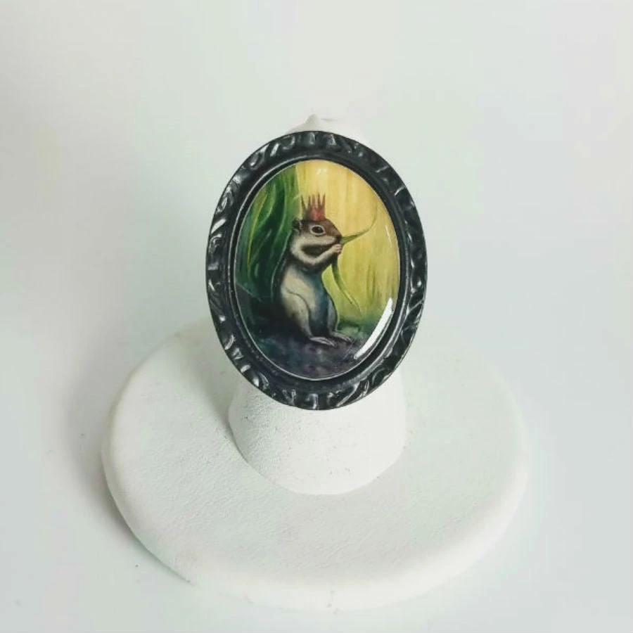 Sweetest little crown-topped squirrel “Grass Whistle” ring by artist Kelly Vivanco for Classic Hardware