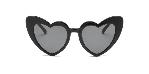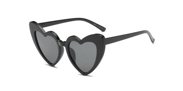 Fun, angular cat eye “Lolita” heart-shaped sunglasses, in shiny black with black smoke lens