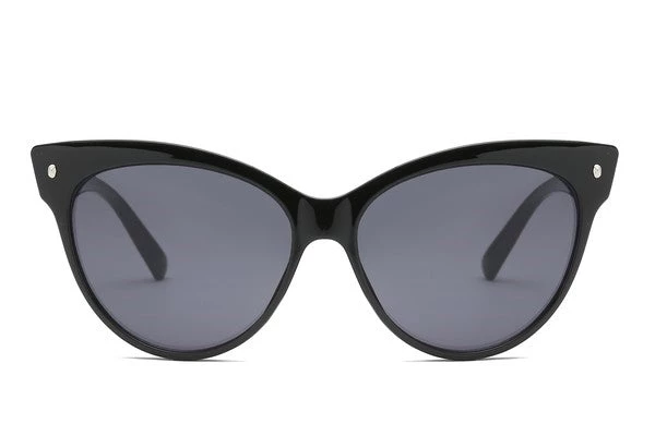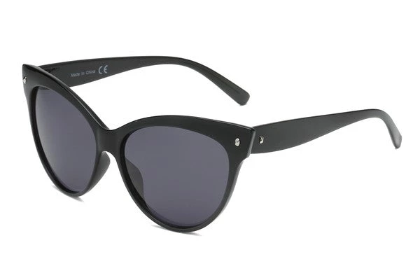 Big vintage inspired shiny black plastic frame cat eye sunglasses with dark smoke lens –perfect for adding some drama and glamour to your modern or retro ensembles!