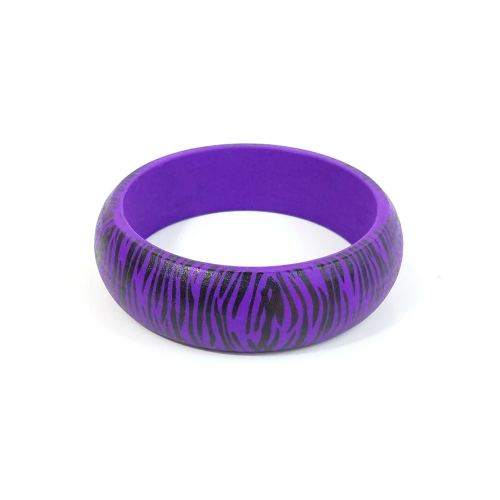 Purple & black tiger print painted wood bangle –a sassy accessory for retro or modern ensembles!