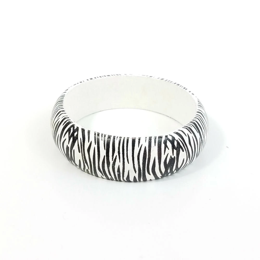 White & black tiger (or zebra!) print painted wood bangle –a sassy accessory for retro or modern ensembles!