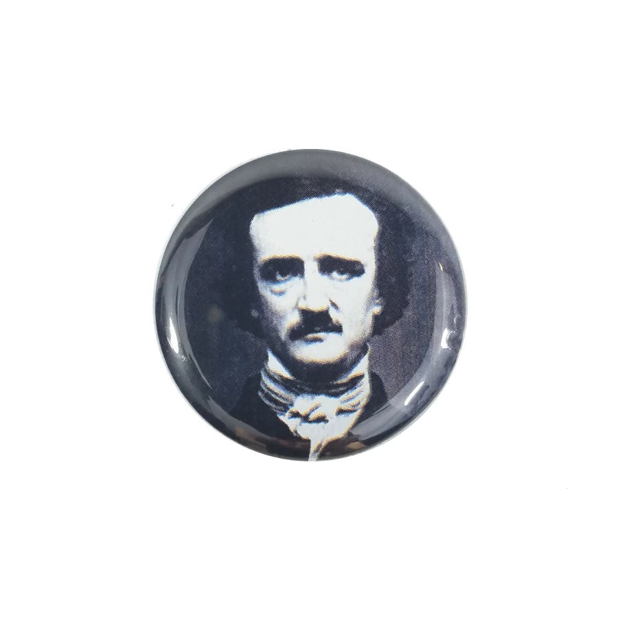 Quoth the Raven, “Nevermore”…be without this Edgar Allan Poe pin on your jacket, vest, or bag. Perfect for fans of classic horror and the macabre.