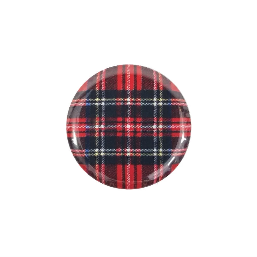 Classic red, black, white, blue and yellow plaid button!