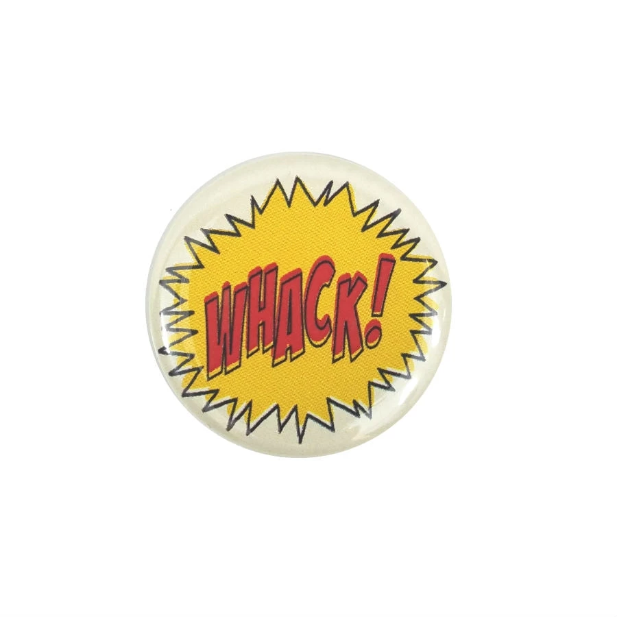 This classic and colorful Whack! button will really add some impact to your jacket or vest!