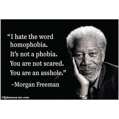 “I hate the word homophobia. It’s not a phobia. You are not scared. You are an asshole.” Morgan Freeman photo and quote rectangular refrigerator magnet