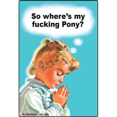 “So Where’s My Fucking Pony?” rectangular refrigerator magnet