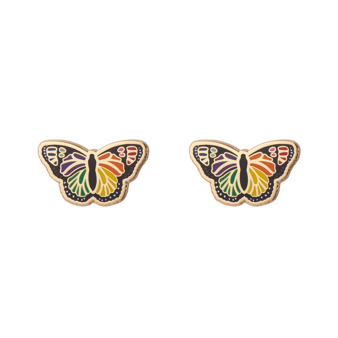 Pride & Joy Collection “Prince of Pride” butterfly enameled gold metal post earrings, made by Erstwilder