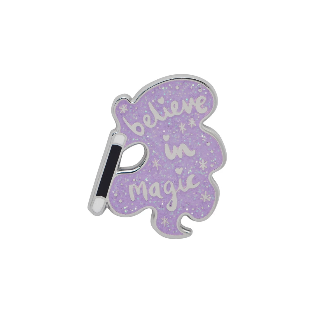 “Believe in Magic” enameled silver metal clutch back pin, made by Erstwilder