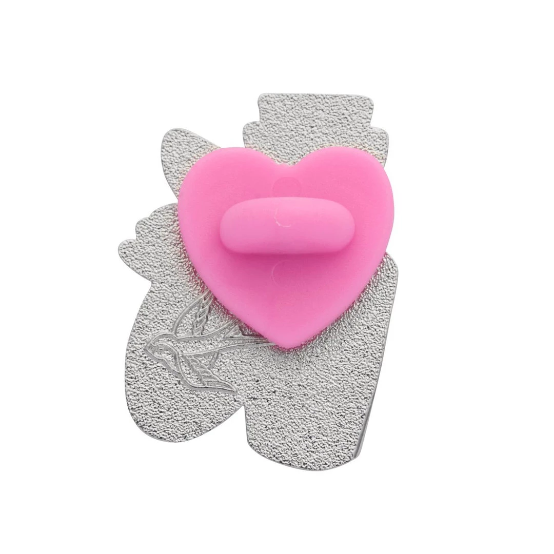 Kitschy Witch Designs Alice’s Wonderland collaboration collection “Drink Me” enameled silver metal clutch back pin, made by Erstwilder