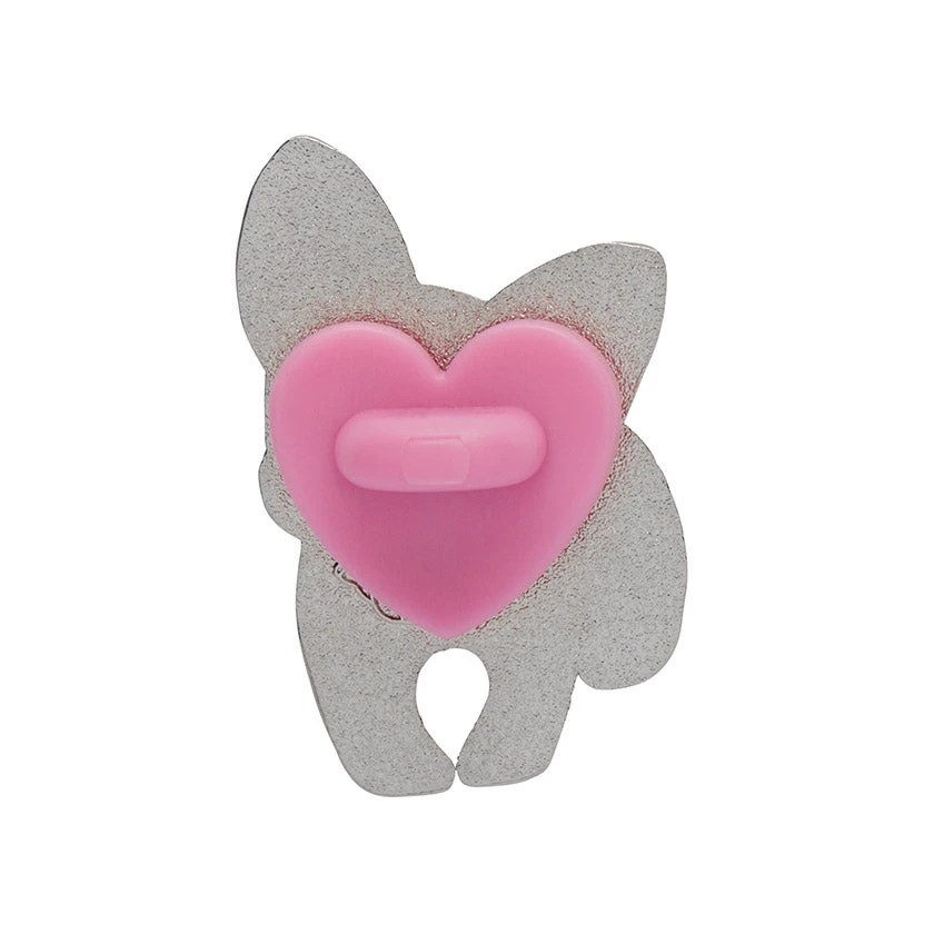 “Fabian the French Bulldog” enameled silver metal clutch back pin, made by Erstwilder