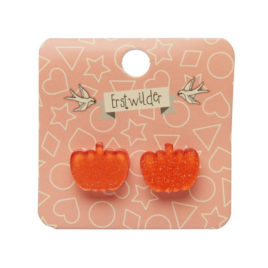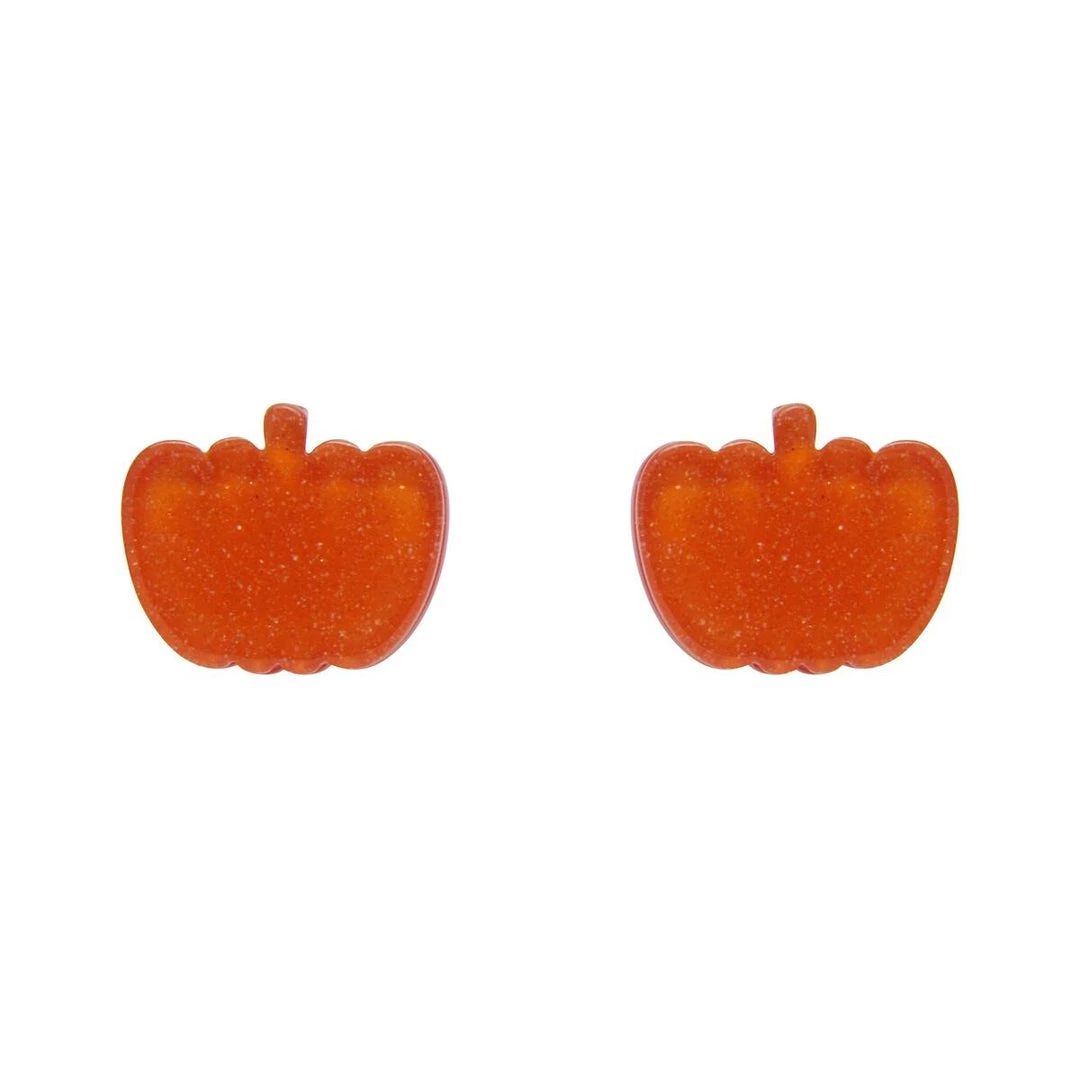 Halloween Essentials Collection glitter-y orange pumpkin shaped post earrings in 100% Acrylic resin, designed in Australia by Erstwilder.
