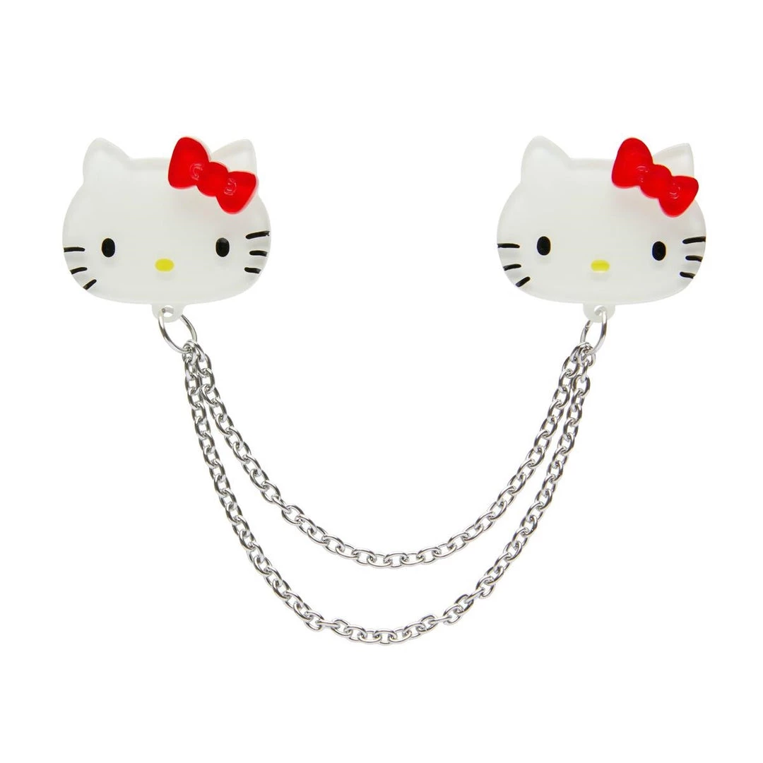 Erstwilder x Hello Kitty Collection “Hello Kitty” chain-linked layered resin brooches. This set will look amazing “scattered” on your outfit, or worn as retro sweater clips! All designs are original and limited in production–once they’re gone, they’re gone forever!