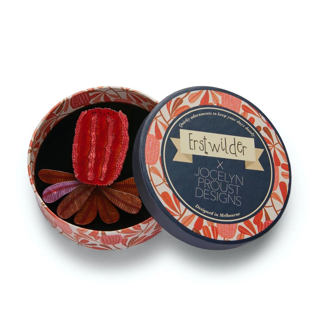 Jocelyn Proust Collaboration Collection “Bushy Blush” layered resin Banksia brooch, designed in Australia by Erstwilder. All designs are original and limited in production–once they’re gone, they’re gone forever!