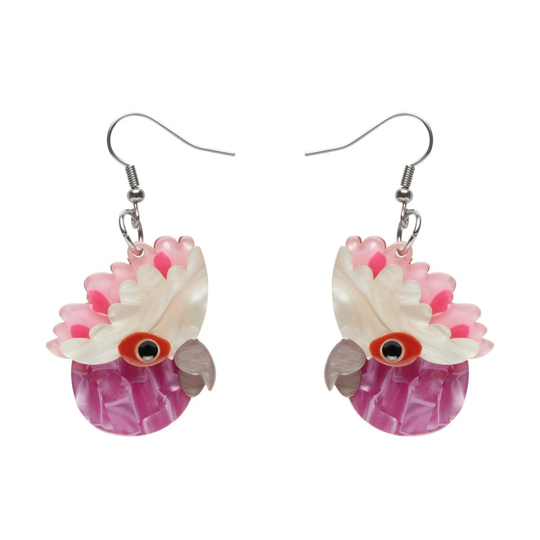 Jocelyn Proust Collaboration Collection “Pinky Promise” pair of multi pink and white layered resin birdie head dangle earrings, designed in Australia by Erstwilder. All designs are original and made from layered resin and are limited edition–once they’re gone, they’re gone! All metal components are made from a lead and nickel free base-metal.