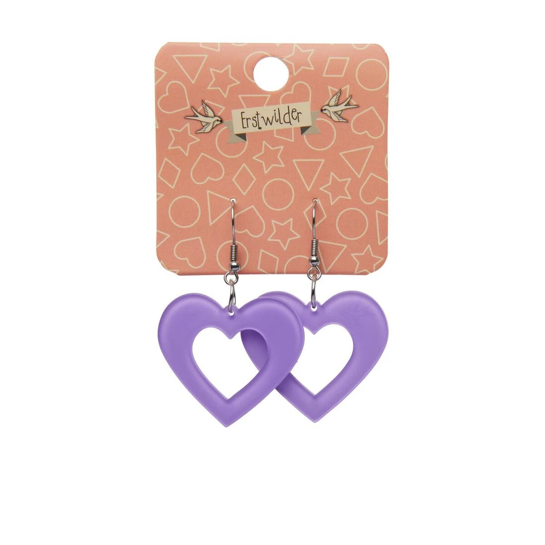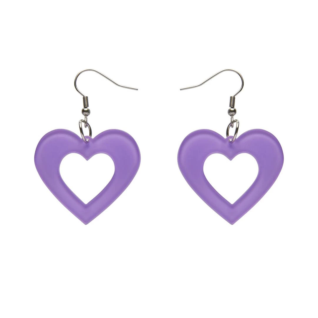 Essentials Collection heart shaped dangle earrings in lavender 100% Acrylic bubble resin, designed in Australia by Erstwilder.