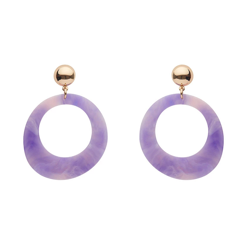 Essentials Collection light purple ripple texture 100% Acrylic resin circle suspended from a shiny gold metal dome post drop earrings, designed in Australia by Erstwilder.