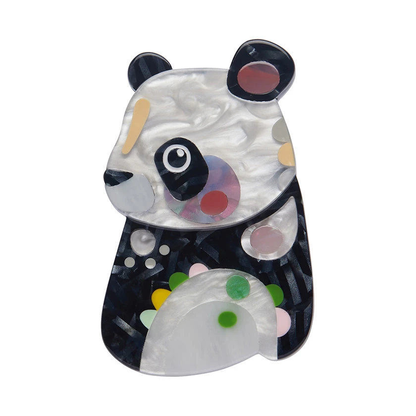 Pete Cromer x Erstwilder Wildlife Collaboration Collection “The Patient Panda” layered resin brooch, designed in Australia. All designs are original and limited in production–once they’re gone, they’re gone forever!