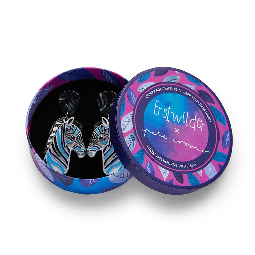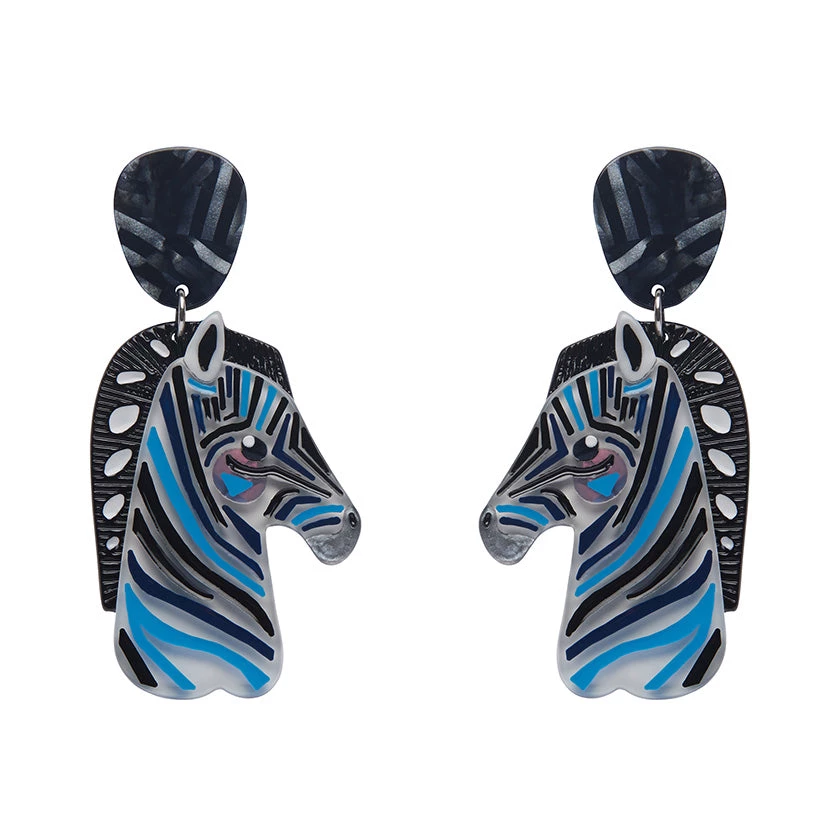 Pete Cromer x Erstwilder Wildlife Collaboration Collection “The Zealous Zebra” layered resin drop earrings, designed in Australia. All designs are original and limited in production–once they’re gone, they’re gone forever!