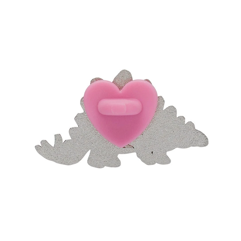 “Scotty Stegosaurus” enameled silver metal clutch back pin, made by Erstwilder