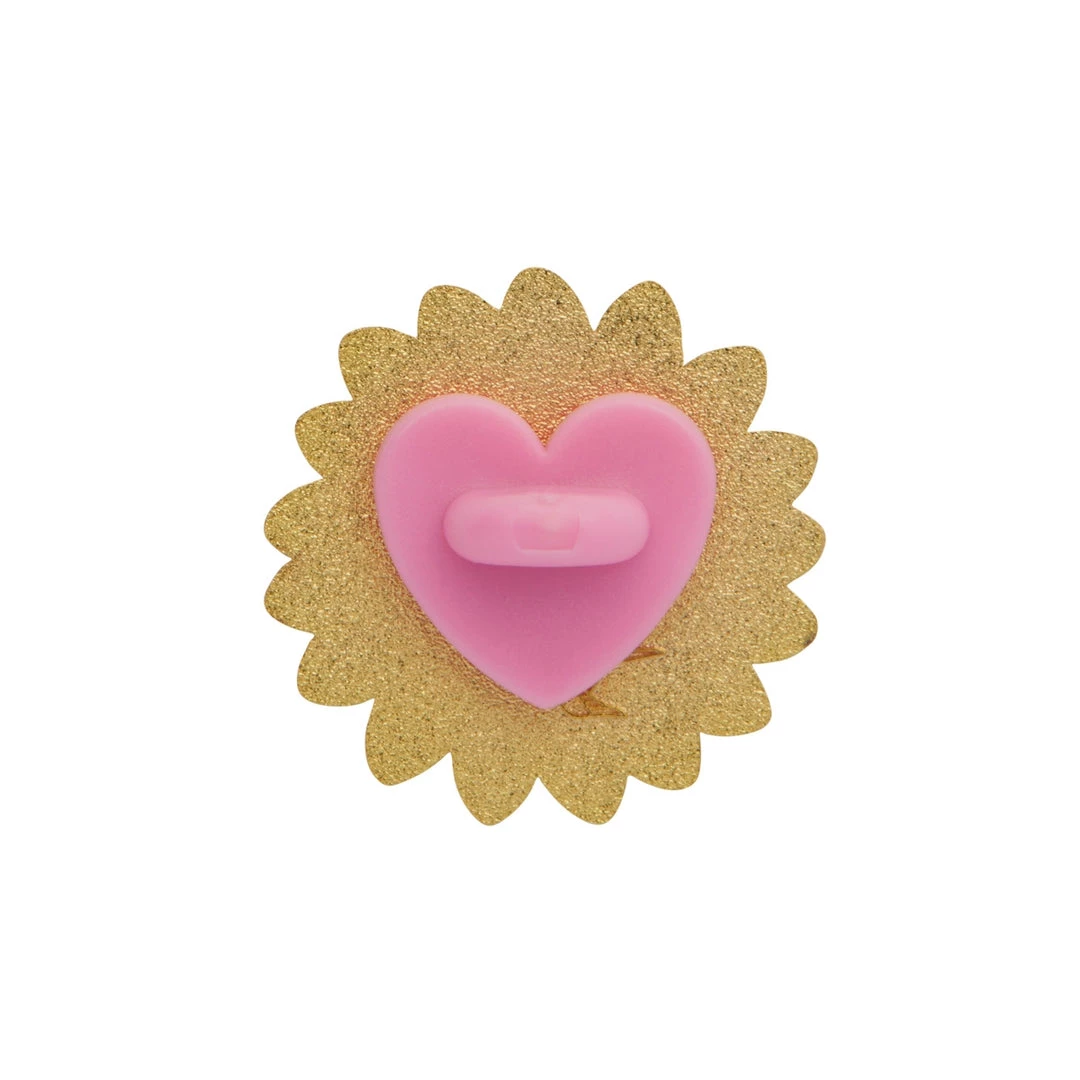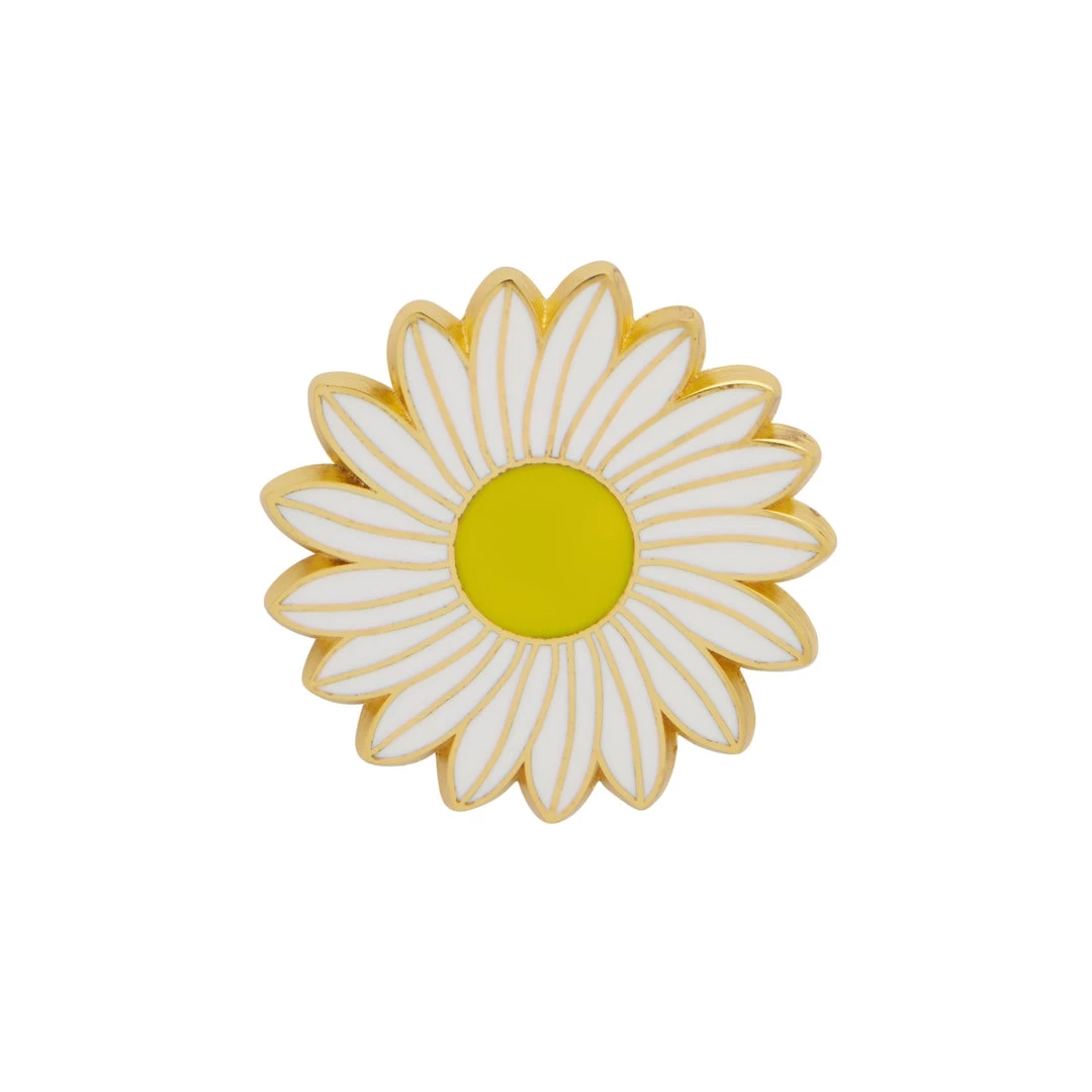 “She Loves Me” daisy enameled gold metal 1″ clutch back pin, made by Erstwilder