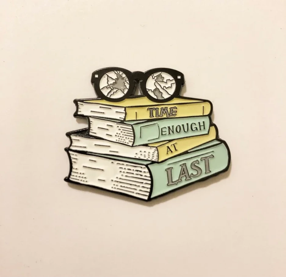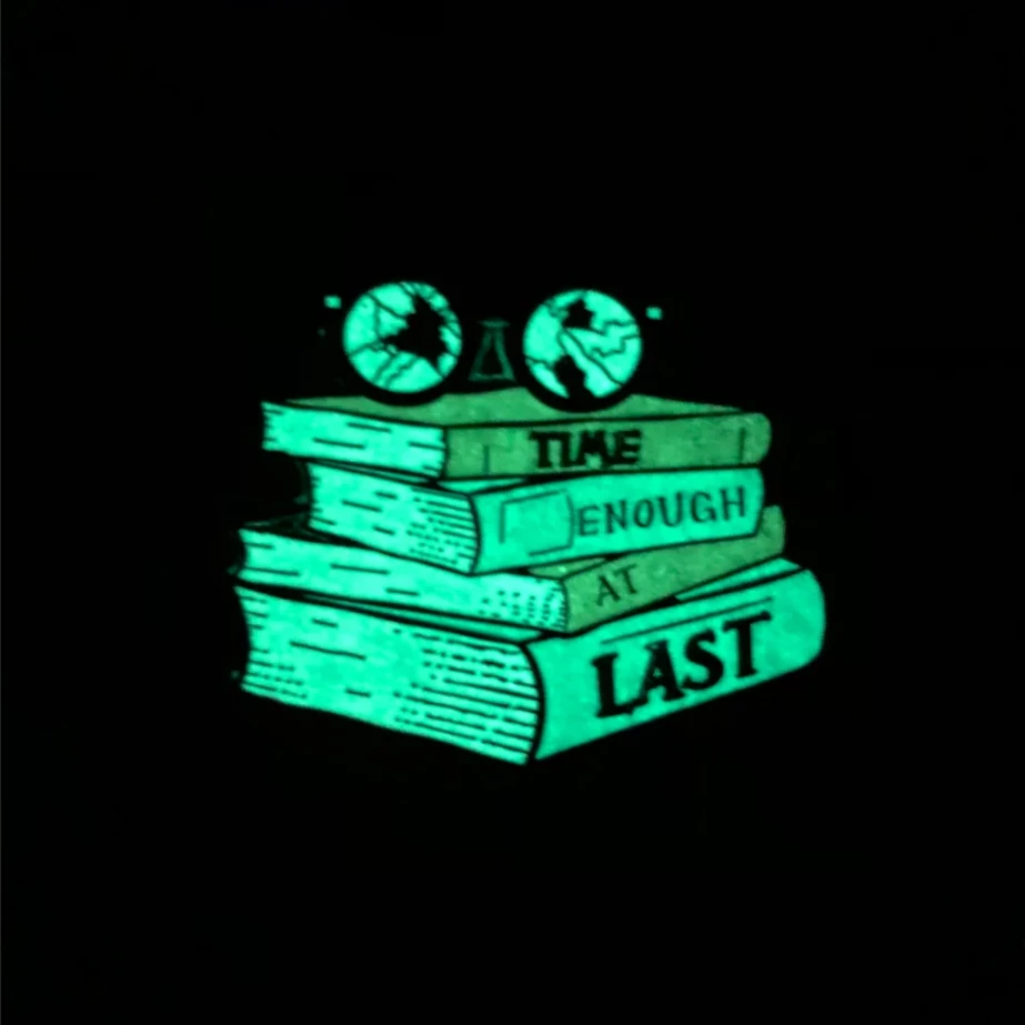 Recall one the greatest, and most haunting, episodes of The Twilight Zone with this “Time Enough At Last” enamel pin from Mood Poison, now available in an extra eerie glow-in-the-dark version