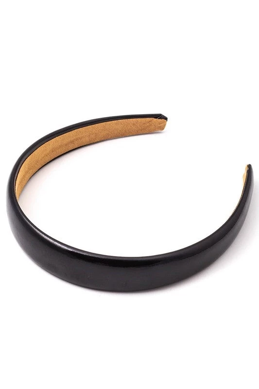 Shiny black 1 1/8″ wide headband with tan faux suede lining –a classic accessory perfect for adding a polished finish to so many ensembles!