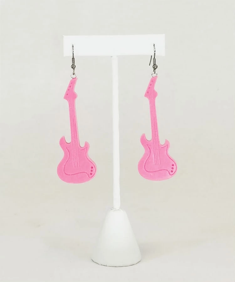 BIG nicely detailed bright rosy pink resin electric guitar dangle earrings