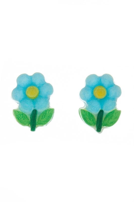 Girly Accessories Flower Post Earrings – Blue