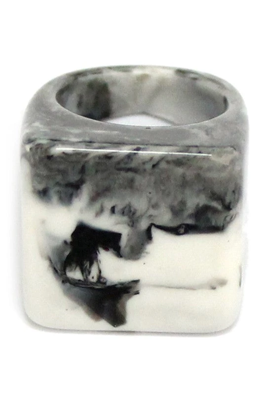 Square shape black & white marbled pattern resin ring –a fun accessory for retro or modern ensembles!
