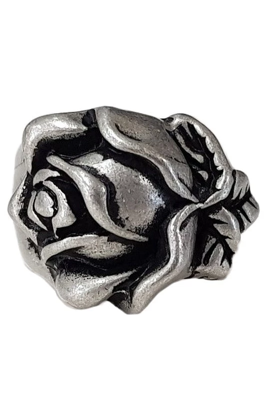 Very pretty 3/4″ wide antiqued silver metal rose ring in size 7