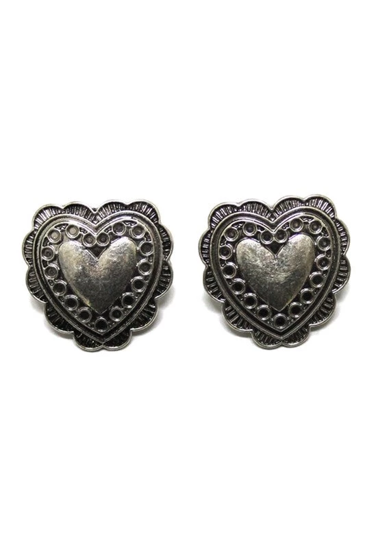 Very pretty burnished silver metal doily detail heart shaped post earrings
