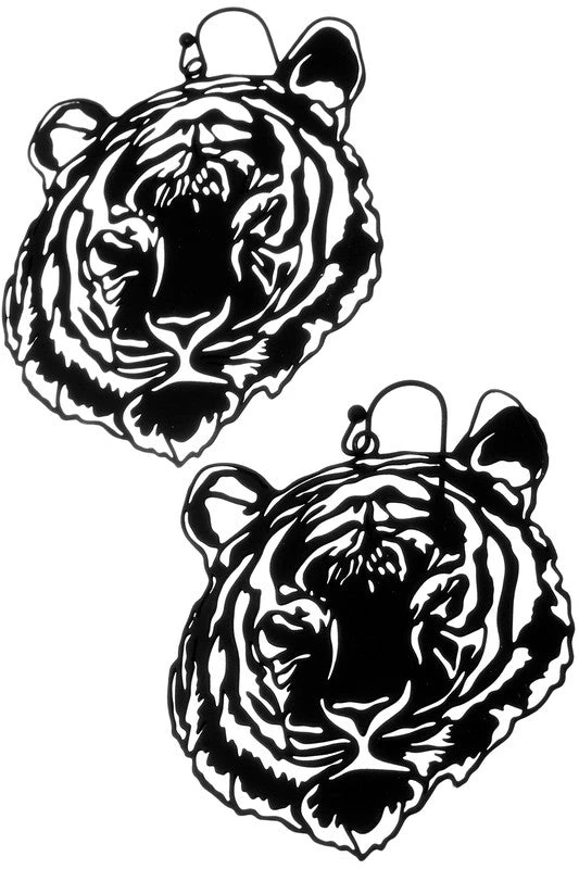 Girly Accessories Tiger Face Dangle Earrings In Black