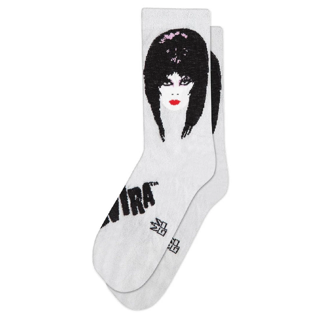Officially licensed Elvira Sparkle sheer metallic silver stretch cotton/lurex blend crew socks, made by Gumball Poodle