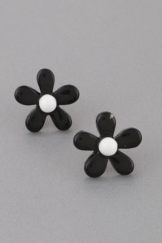Sweet 3/4″ black* & white resin daisy type flower post earrings.