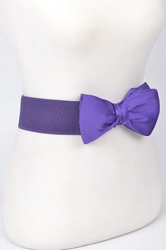 elastic waist belt in purple with a big 6″ x 4″ purple fabric bow is sure to do the trick!