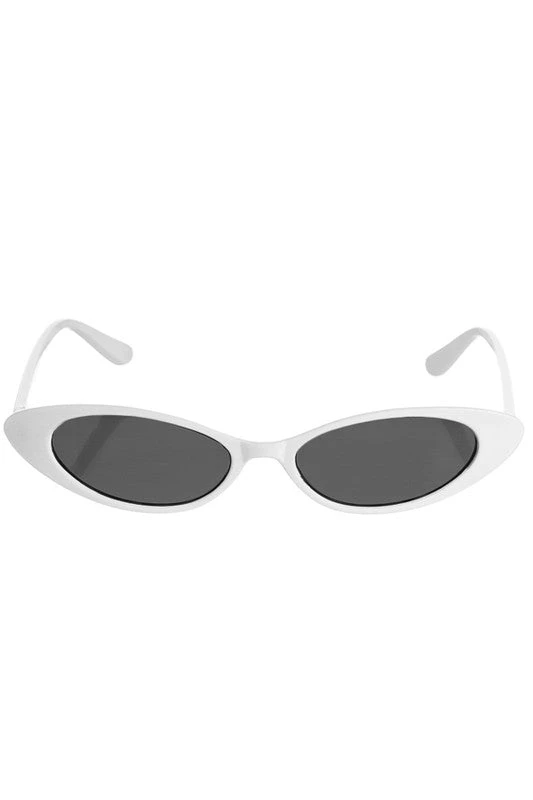 These may not have the most coverage, but they’ve got attitude to spare! Slim white plastic frame cat-eye sunglasses with black smoke lens.