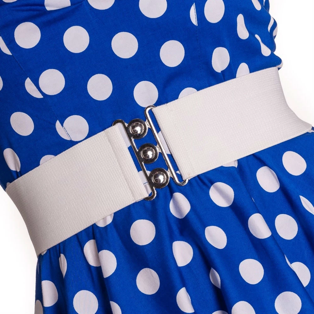 Bring that va-va-voom look together with a cinched waist! This elastic waist belt in pretty pink with retro-style three circle silver metal buckle from Hell Bunny is sure to do the trick!