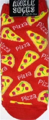 Brightly colored soft & cozy red and yellow pizza slice print ankle socks