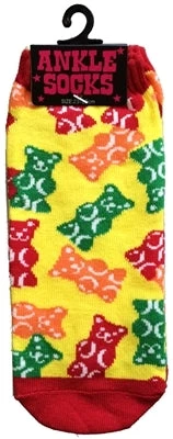 Soft & cozy little yellow ankle socks with allover gummy bears print
